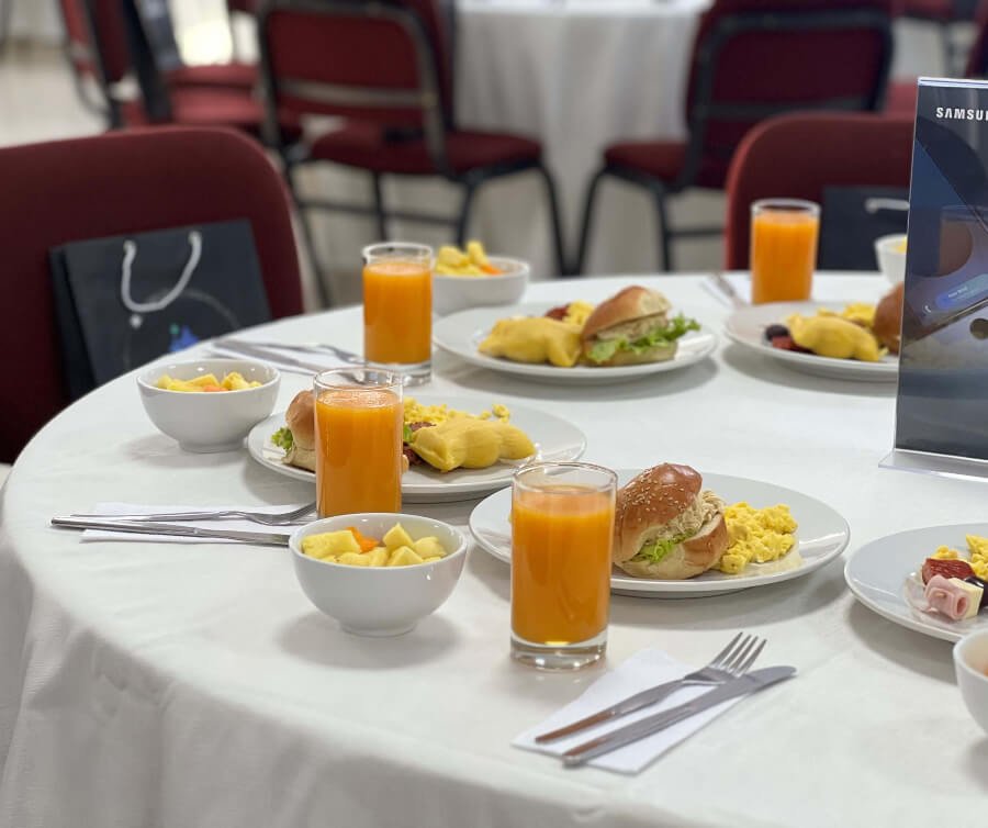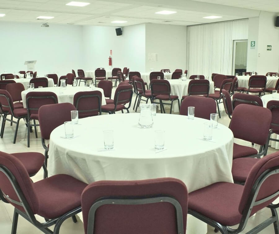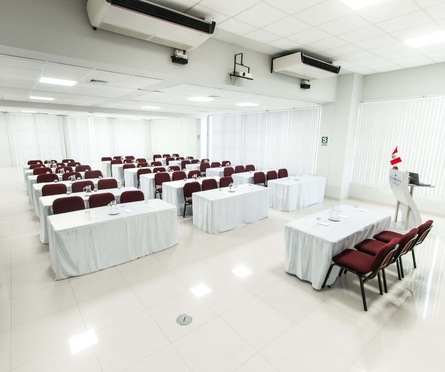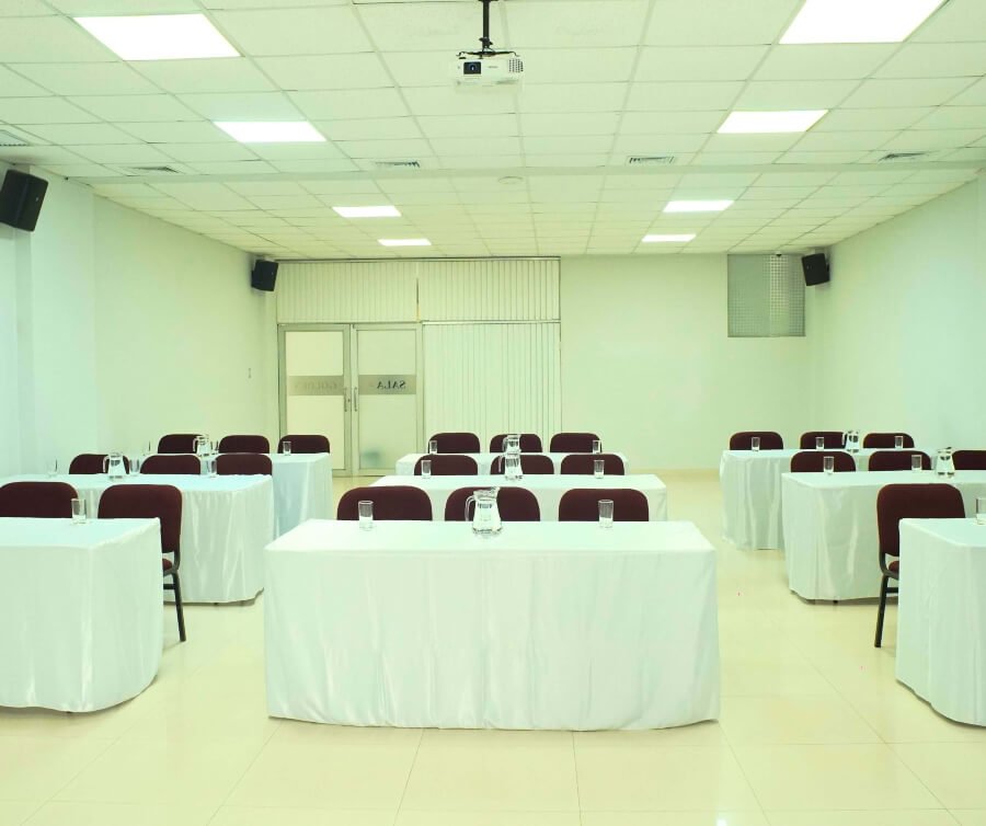 Cada sala está equipada con aire acondicionado, proyector multimedia, sistema de sonido, conexión a internet, mobiliario configurable y personal de soporte técnico. Además, brindamos opciones de coffee break, box lunch, almuerzos y desayunos empresariales, garantizando una experiencia completa y profesional para tus eventos.